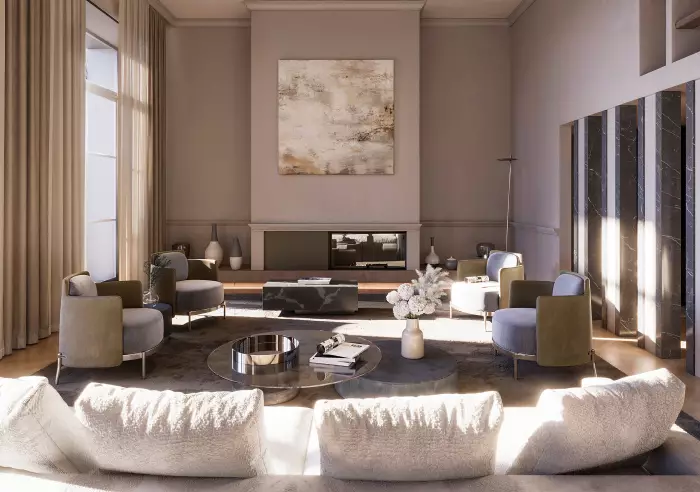 Every detail of this extraordinary residence has been meticulously curated for timeless elegance. A harmonious palette of natural stone, warm wood finishes, and soft neutral tones creates an atmosphere of serene comfort and effortless luxury.