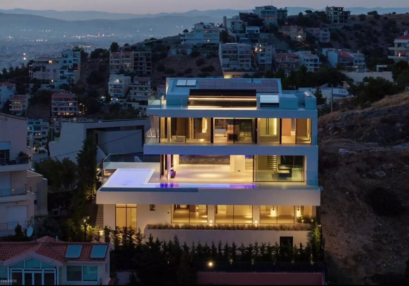 Welcome to one of the most advanced and luxurious residences in the Athens Riviera, located in the prestigious neighborhood of Panorama Voula. This newly completed 911 m2 architectural masterpiece sits on two merged plots totaling 1,150 m2, offering absolute privacy, panoramic views, and top-tier construction. Built to the highest standards with reinforced concrete, it achieves 93% energy self-sufficiency and holds an A++ energy rating.