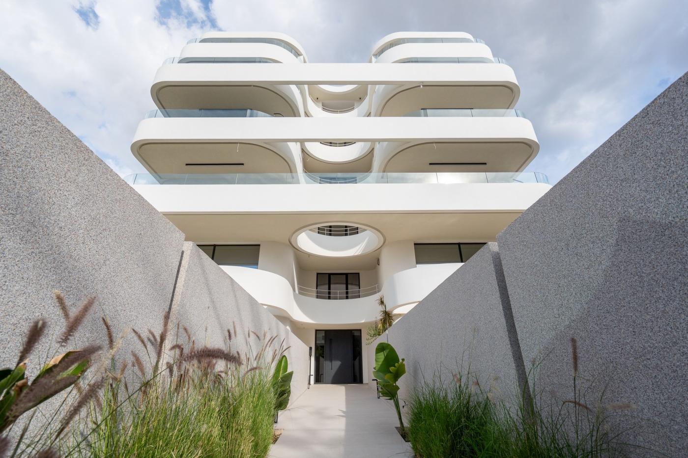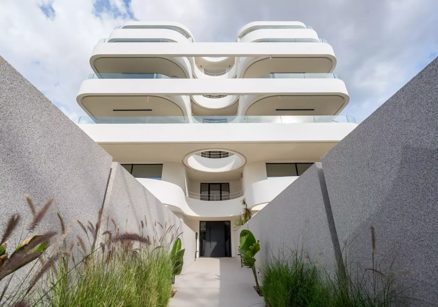 The penthouse offers three bedrooms and two and a half bathrooms, each appointed with top grade marble, premium fittings and carefully curated finishes throughout. The open plan kitchen integrates seamlessly with the main living and dining areas, enhancing natural flow and functionality, while a separate exterior laundry area preserves the clean architectural aesthetic.